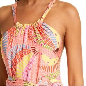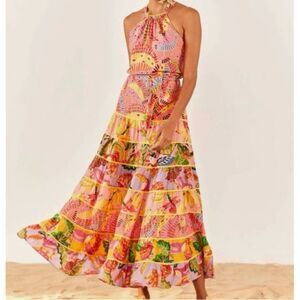 FARM Rio Mixed Pink Prints Maxi Dress Fruit Tiered Crossback Belt