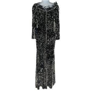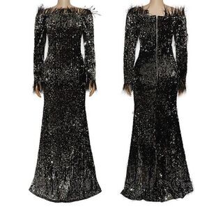 NEW FASHION Bodycon Sexy Dresses Women Off Shoulder Feather Long Dress Size XL