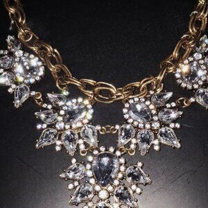 VERY BEAUTIFUL COSTUME FASHION NECKLACE WITH LARGE CRYSTALS AND ANTIQUE GOLD CHAIN. NEW IN ORIGINAL BOX.