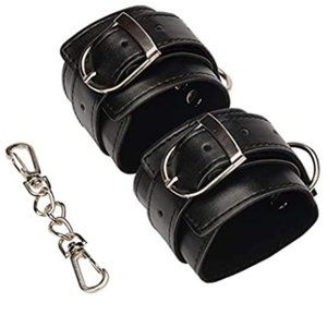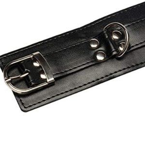NEW FAUX LEATHER BLACK COSPLAY HANDCUFF BRACELETS