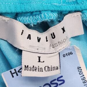 NEW FAVLUX Jumpsuit Womens L Blue Tie Dye Halter Backless Wide Leg Raw Hem Beach Tropical Sexy Cruise Resortwear Casaul Summer