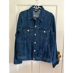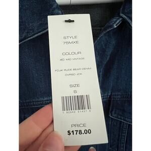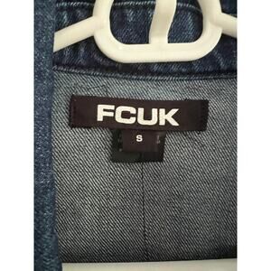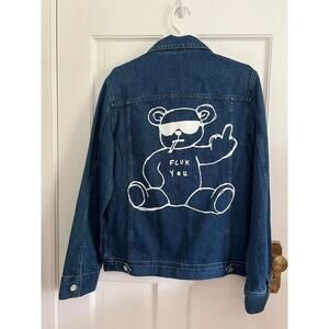 NEW FCUK Women's S Jean Jacket Rude Bear Oversized Denim Dark Wash White Graphic