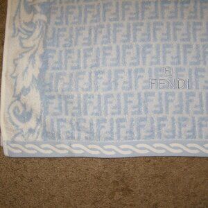 NEW FENDI Bath Towel 100% Cotton Light Blue Zucca in Box Giftable