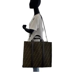 Brand new, timeless Fendi spacious shopper made of jacquard fabric with FF motif in brown with leather trim. Features a fabric-lined internal compartment, inner zip pocket and palladium-finish metalware. Can be carried by hand or on the shoulder thanks to the two leather handles and the adjustable, detachable leather shoulder strap. Made in Italy