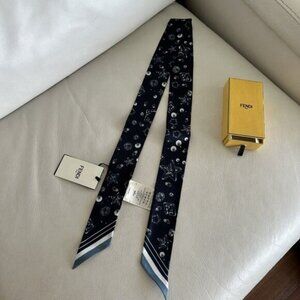 NEW FENDI TWILL SCARF SILK BLUE PLANETS STARS 100% Authentic