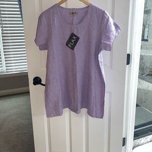NEW FLAX IRIS Thistle PURPLE Lavender Women's Top TUNIC LONGLINE CREWNECK MEDIUM