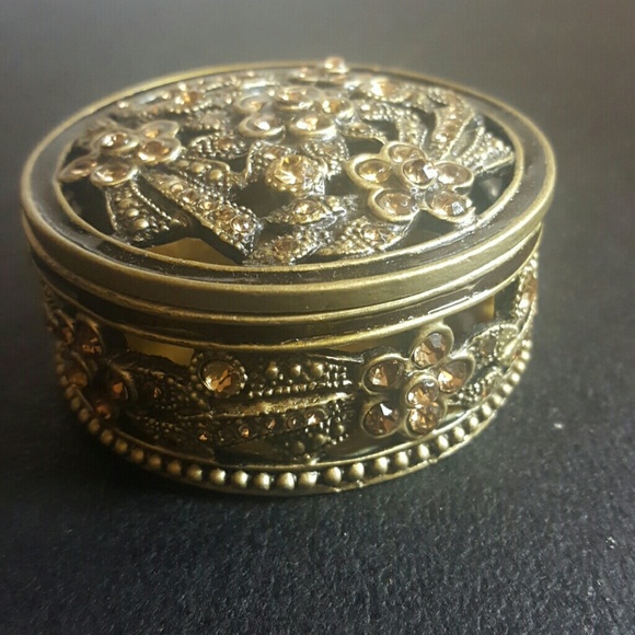 NEW ❤ FLOWER JEWELRY BOX AMBER CRYSTALS❤