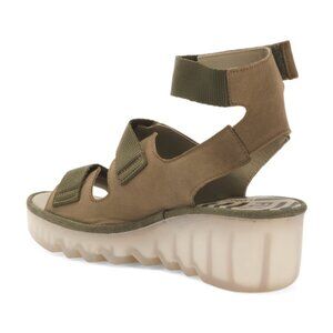 NEW FLY LONDON Made In Portugal Leather Bech Comfort Wedge Sandals khaki 864tn
