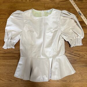 NEW FLYING TOMATO mollie puff sleeve leather top in cream Medium