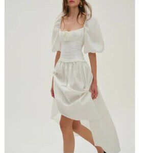 NEW FOR LOVE & LEMONS JEANETTE CREAMY WHITE TAFETTA MAXI DRESS SIZE S