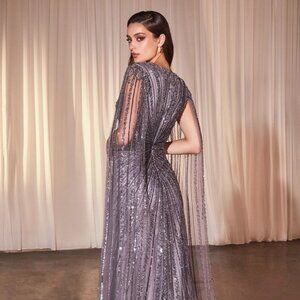 NEW FORMAL MAXI SHEATH TULLE DRESS W/ V-NECKLINE & SEQUINS EMBROIDERY CD0239