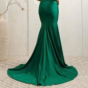 The timeless silhouette of this gown effortlessly enhances your curves, providing a long, graceful length that exudes sophistication. The scoop neckline adds a touch of classic charm, while the sleeveless and strapless design allows you to showcase your shoulders and arms, making it the epitome of timeless glamour.