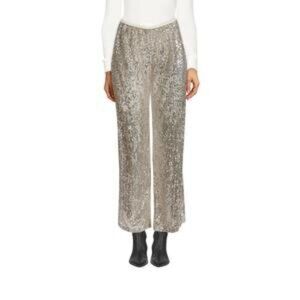 - Description: 100% polyester. Fluid embroidered sequins and a satin waistband. Unstructured trouser silhouette. Made in Italy.