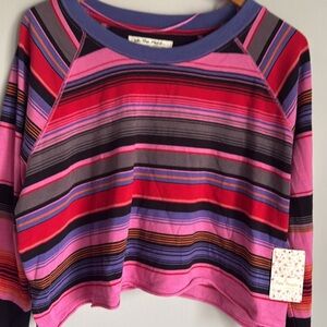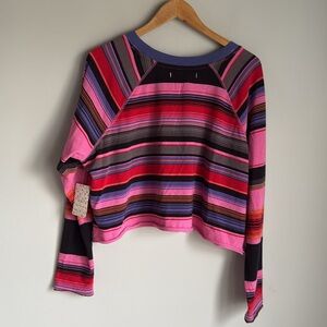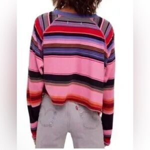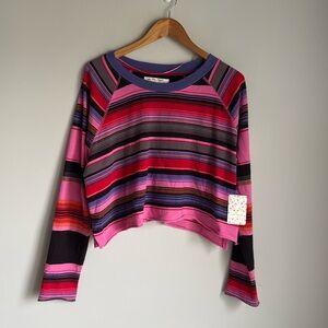 NEW FP We The Free Baja Striped Long Sleeve Tee in Black/Pink Combo