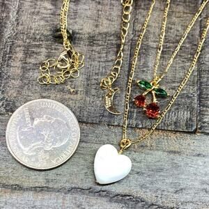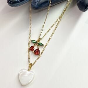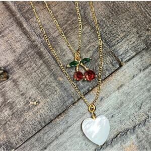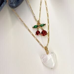 NEW FP x Luna Norte Cherry & Heart Mother Of Pearl Necklace Set
