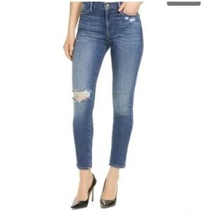 FRAME Le High Rise Ripped Skinny Jeans in Saxon