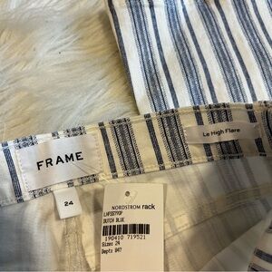 NEW FRAME Le High Flare White Blue Striped Bootcut Jeans Size 24