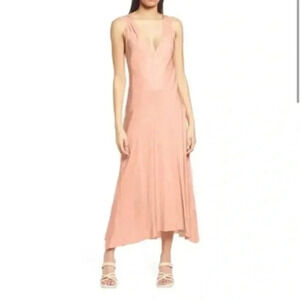 NEW FRAME Pink Clay Satin Sleeveless Maxi Slip Dress