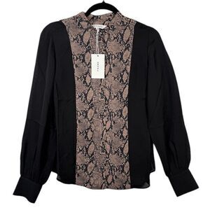 NEW! FRAME Silk Colorblock Blouse Noir Multi Python Print Button Up Size Small