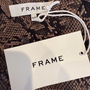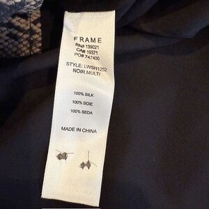 NEW! FRAME Silk Colorblock Blouse Noir Multi Python Print Button Up Size Small. This item is new boutique and still in manufacturers polybag. Brand New and Excellent condition. See photos for details and unstretched measurements. Shop my closet for even more NWT Designer Apparel and quality preowned apparel and bundle multiple items for discounts and one shipping fee!