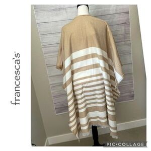 New FRANCESCAS Stripe Belted Ruana Cardigan- Ivory / Tan.
