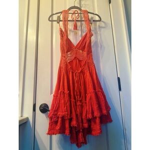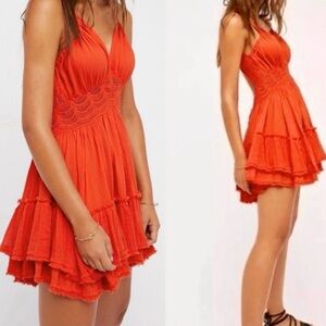 NEW FREE PEOPLE 200 DEGREE MINI DRESS PERSIMMON ORANGE RED CORAL SMALL MINT RARE