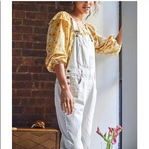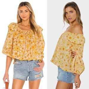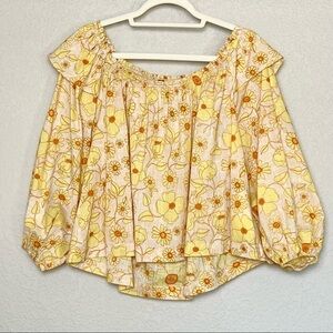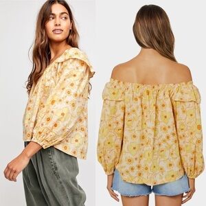 NEW FREE PEOPLE 70s Floral Puff Sleeve Ruffled On/Off Shoulder Oversized Top XS