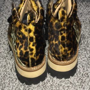 Statement-making mixed leopard print boots featured in textured calf hair with a chunky platform sole.