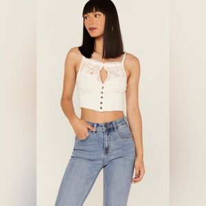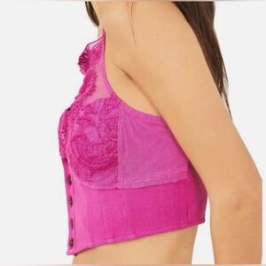 NEW FREE PEOPLE- Crop Top w/ lace detail and cutout button up corset in fuchsia