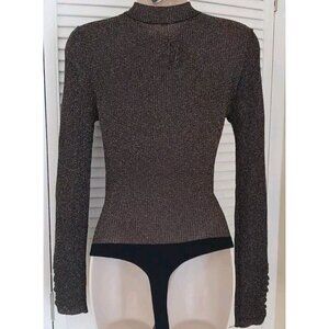 NEW FREE PEOPLE INTIMATELY BLACK RAINBOW LUREX LONG SLEEVE BODYSUIT SZ MEDIUM