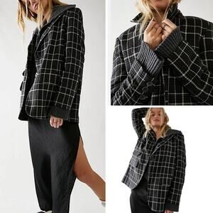 NEW FREE PEOPLE JACKET BLAZER PLAID GREY OVERSIZED BOWIE BLACK OREGANO WHITE L