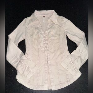 NEW FREE PEOPLE KENNY SLIM TUNIC SANDSTONE CREAM PINK PURPLE WASH HOOK EYE SZ XS