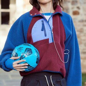 The coolest new take on our best-selling zip-up jacket, this pullover is the most effortless essential for any activity featured in a soft fleece fabrication with quarter button-closure detail and contrast bust pocket with color-blocked detailing for a fun touch.