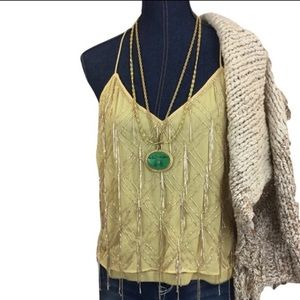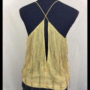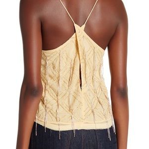 FIRM PRICE🎯🎯New and Absolutely stunning Intimately Free People Gatsby Beaded Tank Top. Size Medium. Featuring A crossover open back and spaghetti straps. Core is Mango (cream, peach, yellow, imo). Approximate flat measurements bust 19", length 21". poly. Hand wash. Amazing with everything from jeans to an evening skirt! Brand new with Tags! This shirt retails for $168.00 plus tax!
