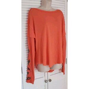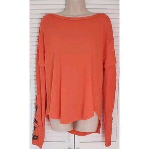 NEW FREE PEOPLE NOT YOUR POPPYS LONG EMBROIDERED SLEEVE TOP TEE SIZE SMALL