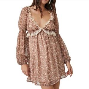 NEW FREE PEOPLE- Pennie Printed Babydoll Mini Dress
