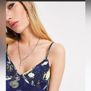 NEW FREE PEOPLE Sz XS SUNFADE PRINTED LACE EMBROIDERED SLIP DRESS NIGHT COMBO