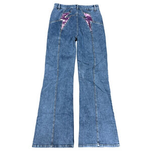NEW FREE PEOPLE THUNDERBIRD FIRECRACKER METALLIC PURPLE PINK FLARE JEANS SIZE 32