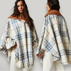 NEW FREE PEOPLE WOODSTOCK BRUSHED PLAID PONCHO CAPE JACKET