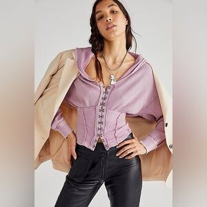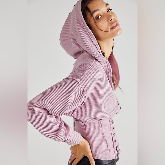 NEW FREE PEOPLE We The Free Cherry Girls Night Thermal Hoodie Sweater Pink XS