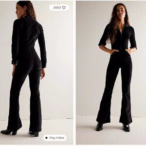NEW FREE PEOPLE We The Free Cordovan Jayde Cord Flare Jumpsuit black j