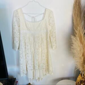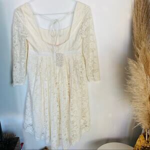 NEW FREE PEOPLE White Sheer Long Sleeve Lace High Low Tie Back Mini Dress 4