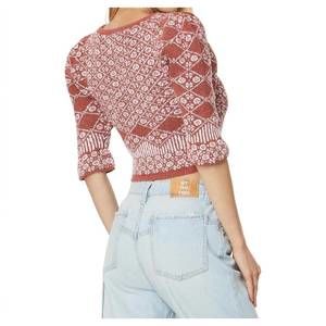 NEW FREE PEOPLE geometric floral cardigan in orchard cinnamon