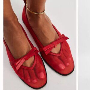 NEW FREE PEOPLE mesh mania bow flat shoes in red 255 3S7