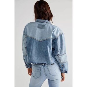 NEW FREE PEOPLE X KSUBI Sz S DESTINY DENIM JACKET PIECED CROP JEAN JACKET