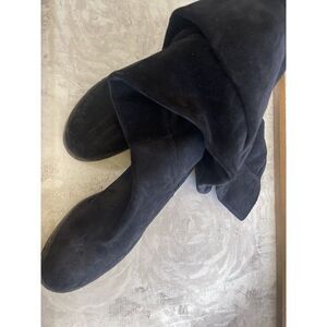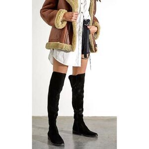 NEW FREE PEOPLE Sz 37 7 CARSON OVER THE KNEE STRETCH SUEDE BOOTS BLACK
