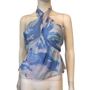 Airy chiffon halter tank. Neck has hook & eye clasps. Fully lined. Smocked back.