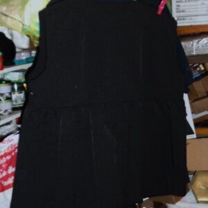 BLACK ,SLEEVELESS,SILVER BUTTONS DOWN THE FRONT WITH RUFFLE DOWN THE FRONT.
