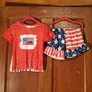 NEW patriotic "Home of the free, Because of the brave" red, white and blue fringed short set