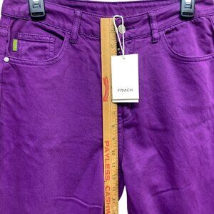 NEW Frnch Womens 28 Aline Wide Leg Jeans Purple High Rise Denim Zip Fly Logo
